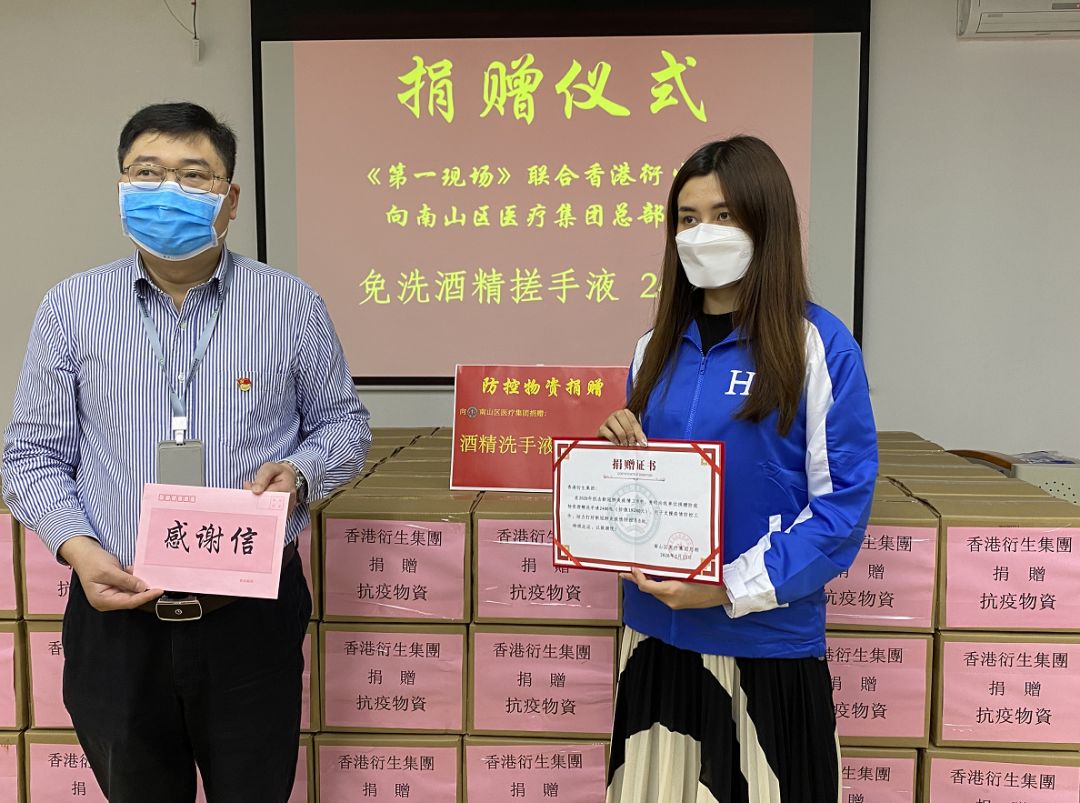 2月26日,香港衍生集團聯(lián)合深圳都市頻道《第一現(xiàn)場》欄目開展了《深愛天使 現(xiàn)場行動》抗疫捐贈活動,向深圳市南山區(qū)醫(yī)療集團總部的82家公立社康醫(yī)院,捐贈價值19.2萬元的2400瓶「私+呵護」免洗酒精搓手液(600ml),藉此慰問抗擊疫情的一線醫(yī)護工作人員!