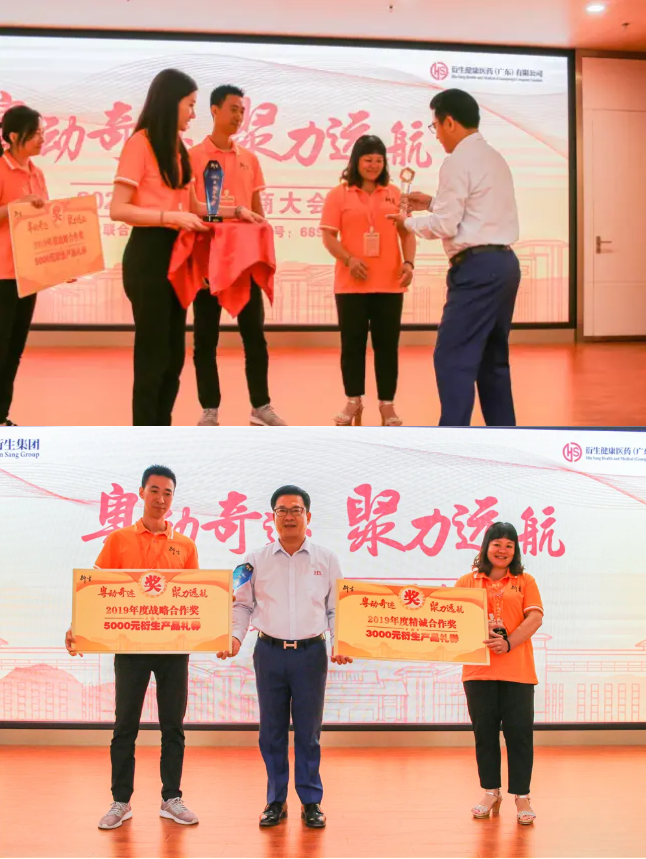 衍生集團每次創(chuàng)造佳績,都廣大經(jīng)銷商的大力支持與信任。為了表彰經(jīng)銷商在2019年取得的非凡成就和顯著業(yè)績,衍生集團主席彭少衍先生現(xiàn)場頒發(fā)了戰(zhàn)略合作獎和精誠合作獎,分別由【汕頭市創(chuàng)匯聯(lián)盟營銷策劃有限公司】和【廣州市從化城郊軒童逸商行】獲得。 ![]() ![]()