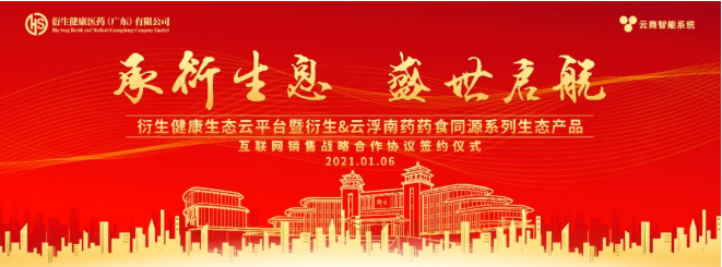 1月6日,衍生健康醫(yī)藥(廣東)有限公司與云商智能系統(tǒng)(廣州)有限公司(源點(diǎn)科技)在衍生健康醫(yī)藥產(chǎn)業(yè)園隆重舉行:衍生健康生態(tài)云平臺(tái)暨衍生@云浮南藥藥食同源系列生態(tài)產(chǎn)品互聯(lián)網(wǎng)銷售戰(zhàn)略合作簽約暨啟動(dòng)儀式 。