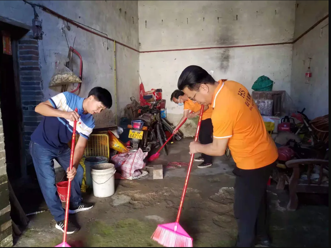 義工隊為老人家中打掃衛(wèi)生、整理房間雜物、裝毛巾架等